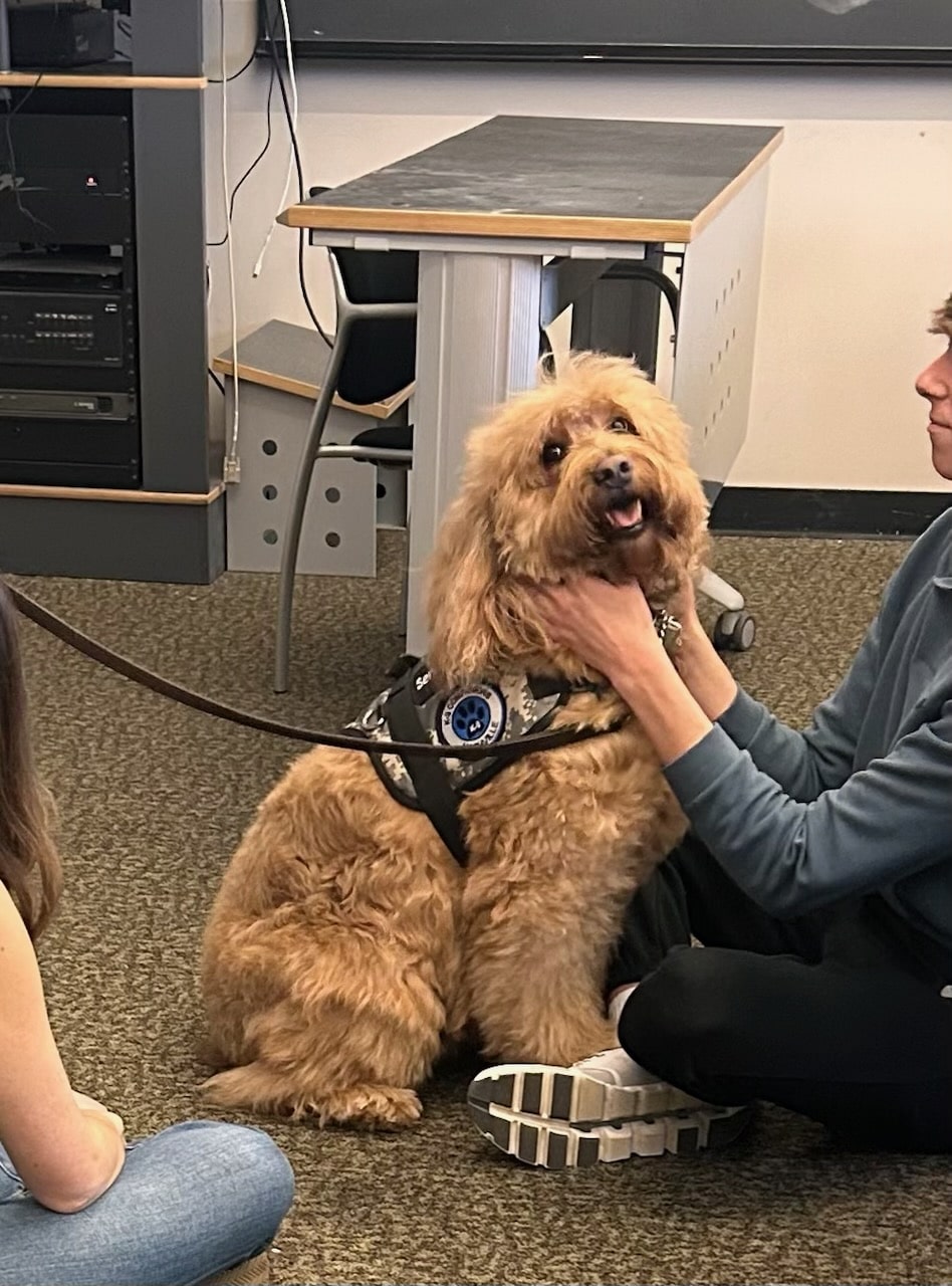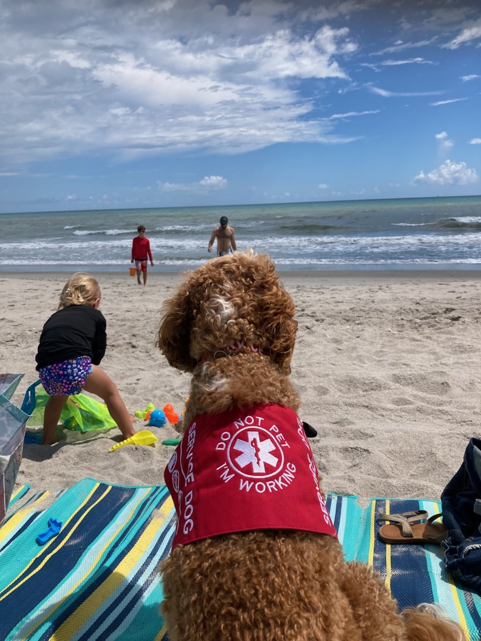 Seizure Response dogs can warn their owners of an upcoming seizure. We teach the owners to do this part themselves. The response part of the equation involves the dog, going to alert a family member by nudging with a paw. Laying on the chest for deep pressure therapy or under the head if appropriate. Getting a med bag or a bottle of water when requested.