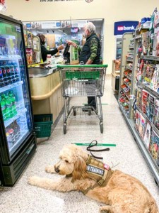 A Diabetic response Service Dog is taught to alert the owner of an upcoming low blood sugar issue. We teach the owner to do this part at home. The dog can be taught to go to another person and nudge in the case the handler cannot wake up. The dog can also retrieve meds and water, as well as being cross trained for balance and any other issues the diabetic person might have.