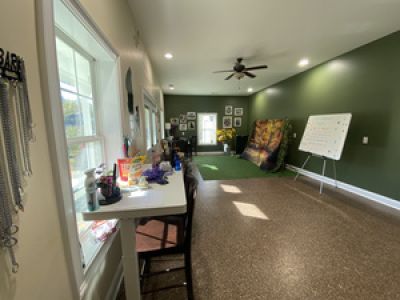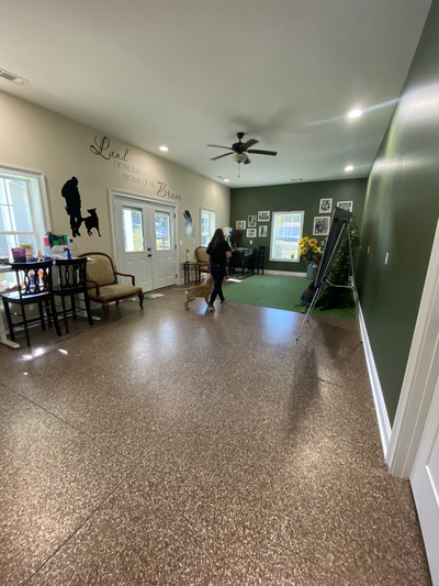 Owners are encouraged to provide food, bedding, and toys from home. Indoor training room-Outdoor training fields-Horse barn breezeway training area.